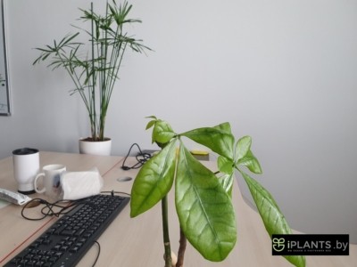 Мы вынуждены были произвести омолаживающую обрезку пахиры у нашего клиента, поскольку она в офисе из за недостатка света за 5 лет сильно вытянуть и потеряла декоративность.