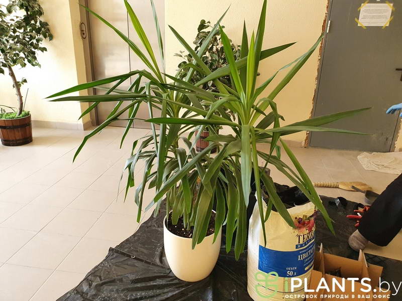 Юкка стала более стильной и красивой в кашпо с автополивом Lechuza.