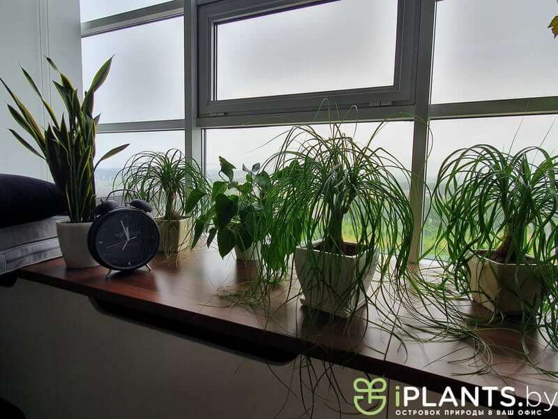 Мы осмотрели и обслужили неприхотливые бакарнею, сансевиерию и антуриум в офисе клиента