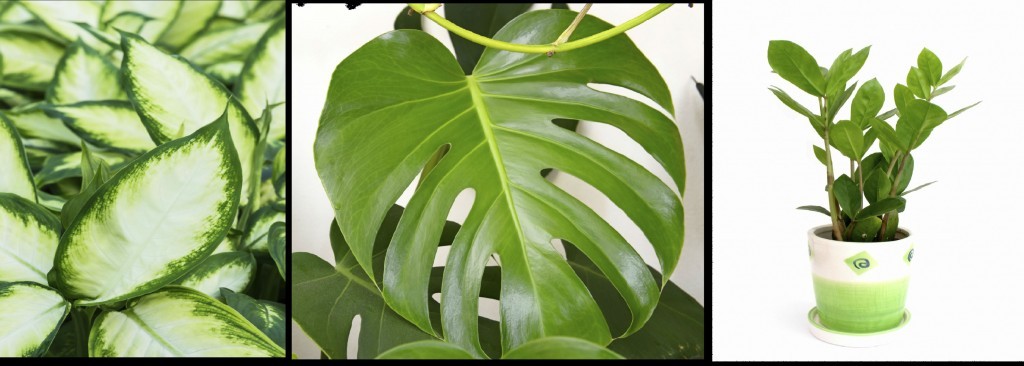 Слева направо: Аглаонема , Филодендрон и монстера, Замиокулькас