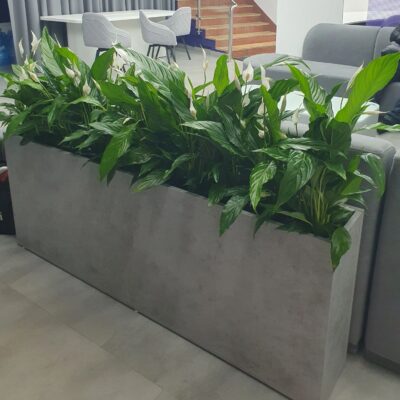 Наша компания реализовала для офиса банка зеленую перегородку со спатифиллумом — современное решение, которое украшает пространство и создаёт комфортную атмосферу для сотрудников и клиентов.